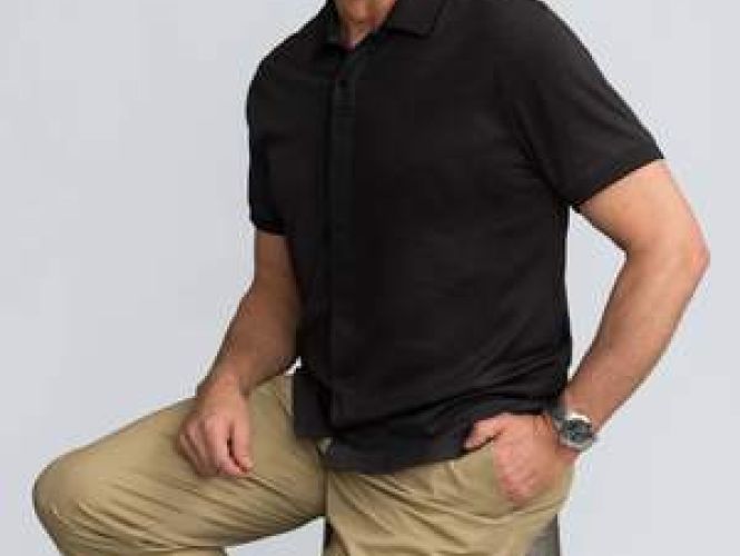 Black Birdseye Knit Short Sleeve Polo with Magnetic Closures
