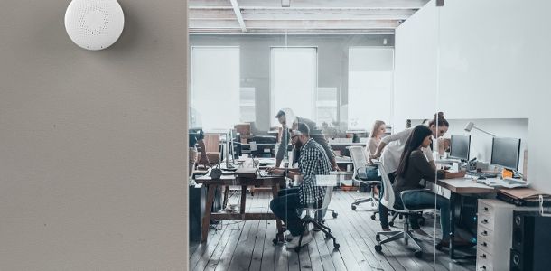 The first battery-operated smart indoor air quality monitor with Radon detection, including sensors for temperature, air pressure, humidity, TVOCs, and CO2.