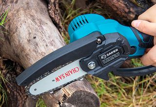 The miniature one-handed chainsaw weighs just 1.1kg (battery included) and has a total length of just 4 inches.