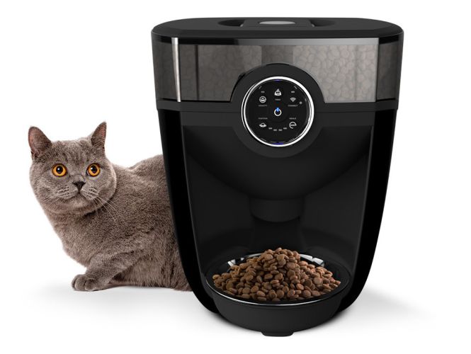 The Feeder-Robot is a WiFi-enabled, automatic pet feeder.