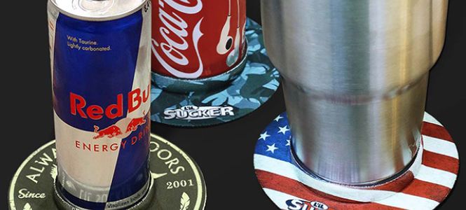 L’il Sucker® keeps your drink firmly planted where you want it. Just slip it on your can, bottle, tumbler, from the bottom up, set it on any smooth surface, and let L’il Sucker do it's magic.