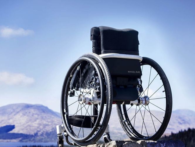 wheelAIR cooling backrest for manual wheelchair users helps regulate their core temperature. The wheelAIR provides the user with cool air flowing up the backrest, operated via a remote control unit.