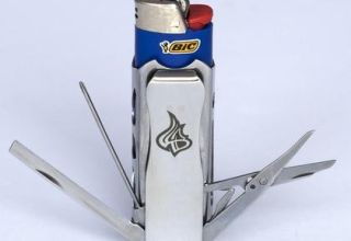 Ingenious multi-tool lighter case with a huge assortment of tools.